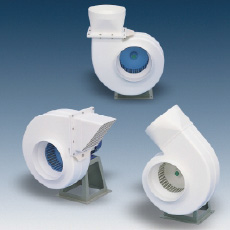 Корпус и рабочее колесо вентилятора модели VSB24 полностью изготовлены методом инжекционного прессования. Корпус из полипропилена, устойчивого к действию УФ лучей, может быть расположен в 8 положениях. Рабочее колесо из полипропилена с загнутыми вперед лопатками, статически и динамически отбалансированное, с упроченной втулкой. Прокладки устойчивы к коррозии и защищают от выхода вредных газов. Опора под двигателем B3/В5 из нейлона. Винты из нержавеющей стали. Вентилятор может быть укомплектован трехфазным, однофазным двигателем или двигателем EEx-d (взрывобезопасное исполнение). Класс защиты - IP55.